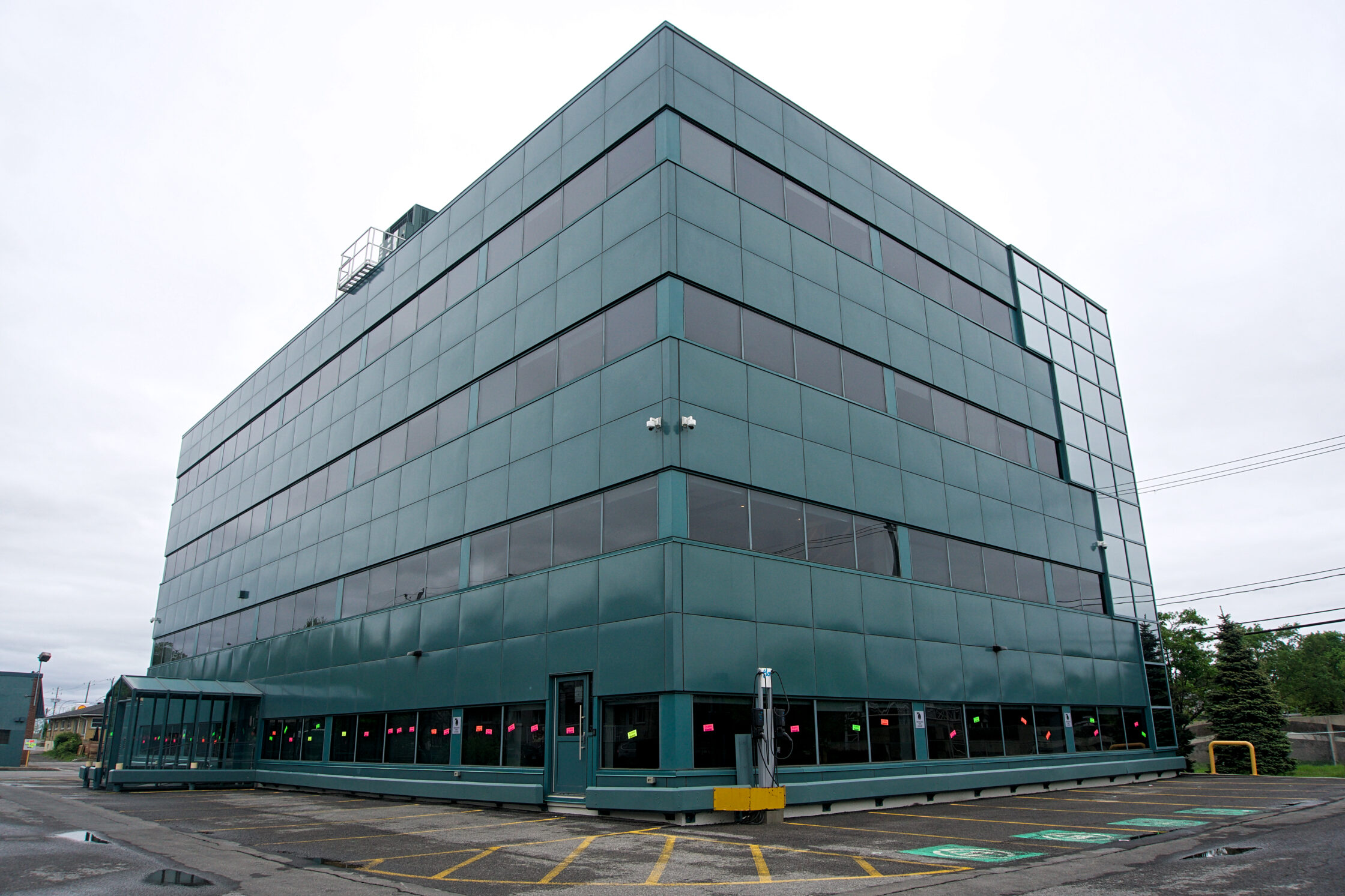 Some of the stickers plastered across the front doors of the APCHQ headquarters read “Travail égal, paye égal” or “Same work, same pay” in English, a slogan propagated by the Alliance referring to the sectoral pay differences between residential and the other four sectors.