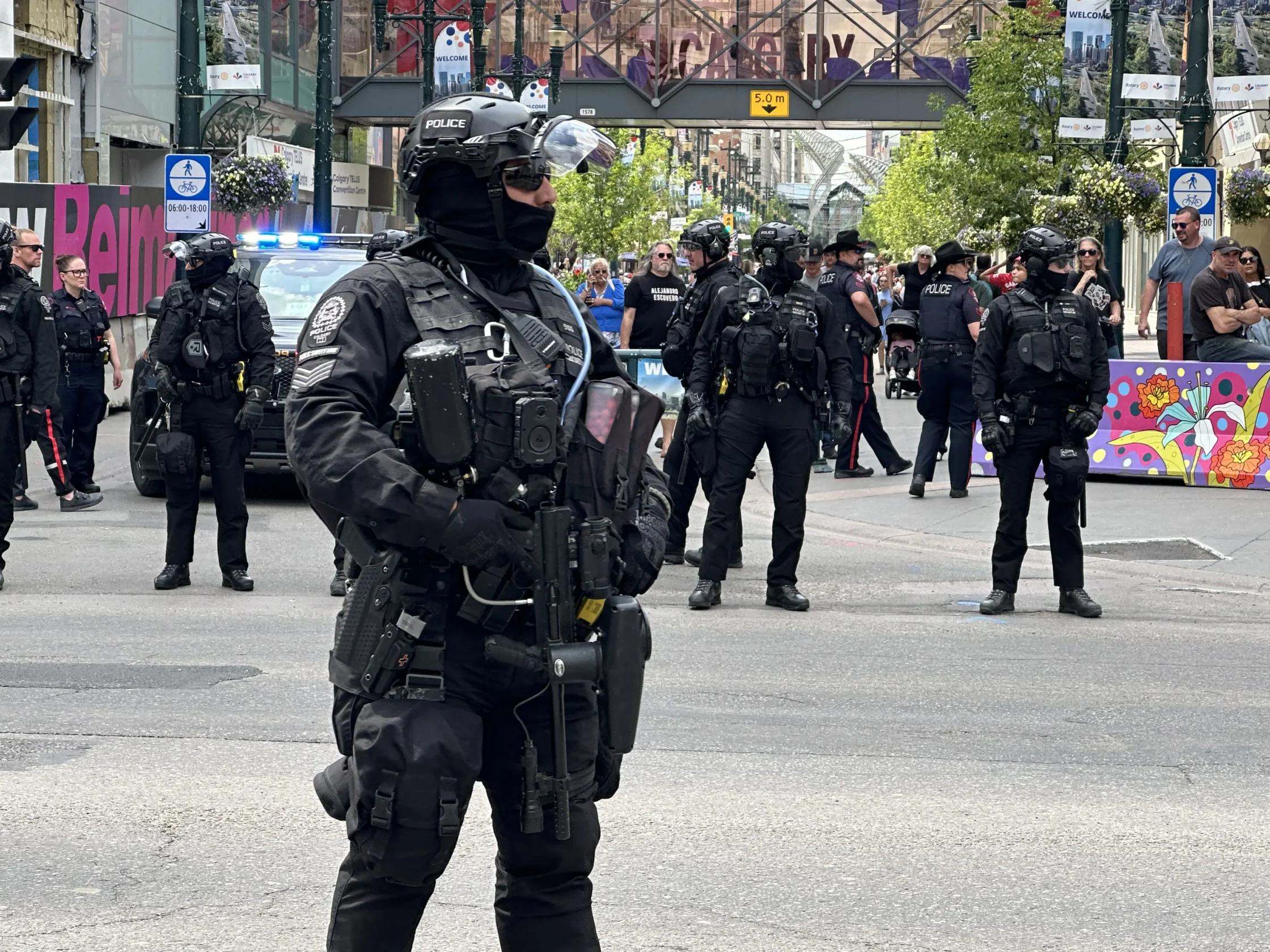 The Calgary police acted like herders, using several intimidation tactics against the protesters, including a method known as “kettling.” This technique, often used by police, involves surrounding a crowd and gradually tightening the perimeter to control movement and isolate individuals, sometimes to make arrests. In this case, no one was arrested. Police also carried handheld cameras in addition to their bodycams, adding another layer of surveillance and pressure on the demonstrators.