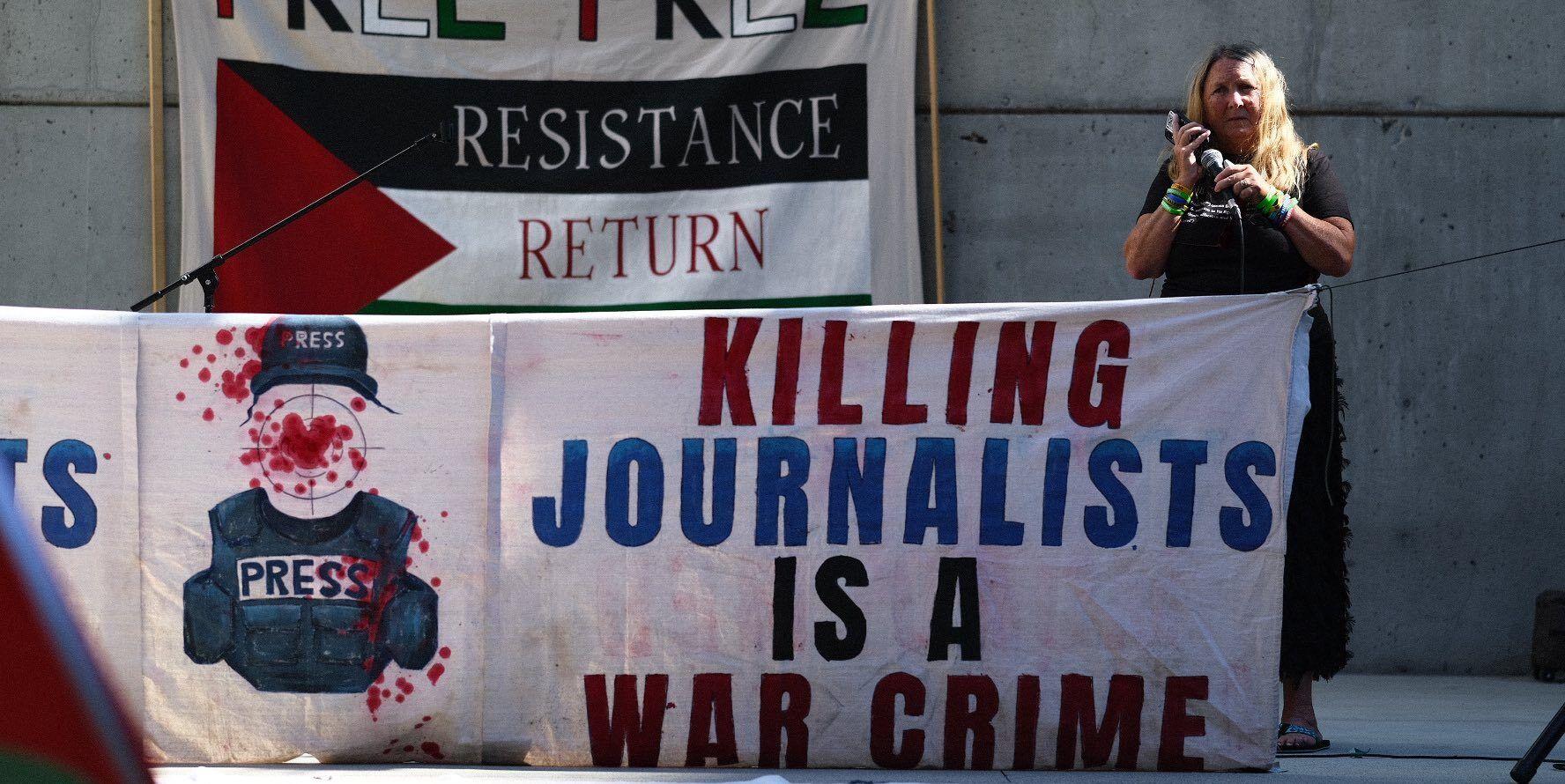“Israel has long martyred Palestinian journalists,” Nadia said, recalling the 2022 targeted assassination of renowned Palestinian journalist Shireen Abu Akleh. She argued that Israel relies on silencing Palestinian media workers whose reporting exposes lies used to avoid accountability for their crimes.